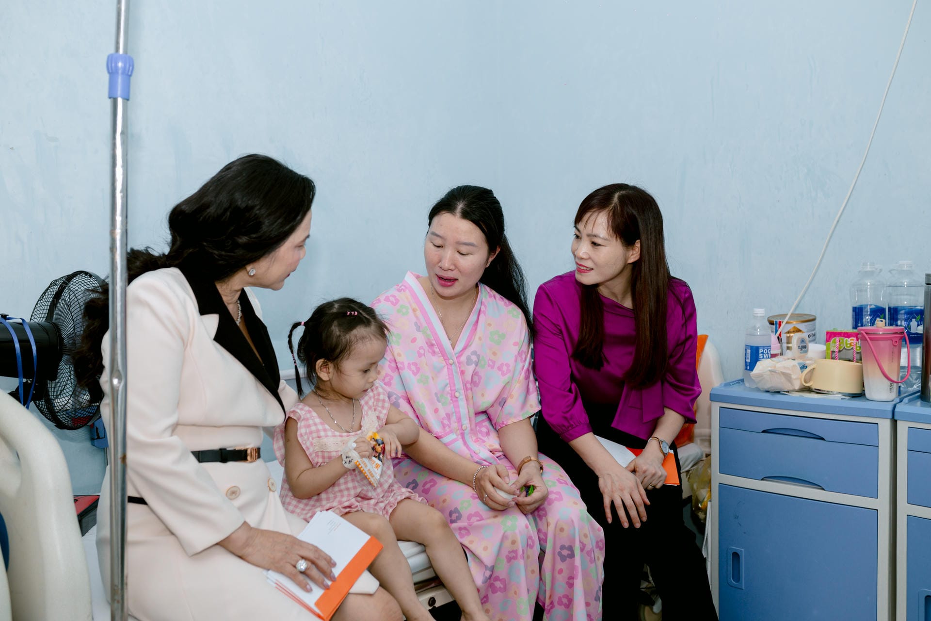 “Chúng tôi gặp những em nhỏ đã nằm viện suốt 7-12 năm, cùng gia đình từ khắp mọi miền đất nước, có những ca bệnh nặng từ Hà Nội, vùng núi phía Bắc đến miền Tây Nam Bộ đều được đưa về đây điều trị. Khi hỏi tại sao không điều trị ở các bệnh viện địa phương, câu trả lời khiến chúng tôi lặng người: “Vì khoa Nhi – Ung bướu, Bệnh viện Nhi Trung Ương Huế là một trong hai nơi duy nhất cả nước có thể thực hiện những kỹ thuật đặc biệt như ghép tế bào gốc, ghép tủy. Chỉ mới đi qua một khoa của bệnh viện, nhưng đã thấy biết bao nỗi đau và thiếu thốn, khiến tôi không khỏi tự hỏi: còn bao nhiêu Khoa như thế? Còn bao nhiêu Bệnh viện như Huế đang cần được tiếp sức?”, Chủ tịch Đặng Thị Kim Oanh xúc động chia sẻ. Ngoài những phần quà đã chuẩn bị từ trước, khi tận mắt chứng kiến những hoàn cảnh khó khăn, Chủ tịch Đặng Thị Kim Oanh đã dùng chính số tiền cá nhân mang theo để hỗ trợ thêm cho các ca bệnh nặng.