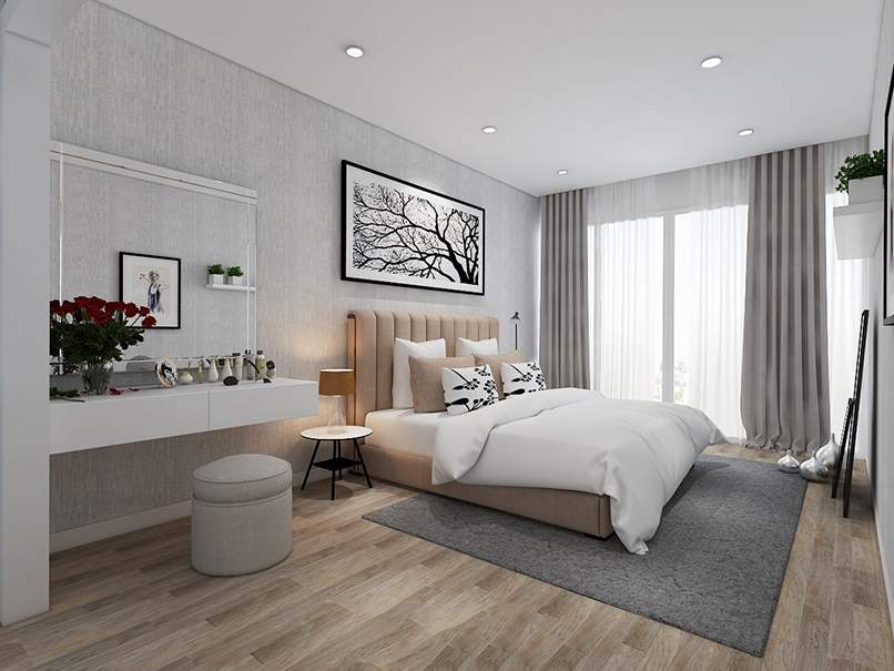 Thiết kế rộng rãi giúp khách hàng có thể bố trí nội thất linh hoạt, dễ dàng theo mong muốn của mình từ tủ quần áo, giường lớn đến những khu chức năng sống khác như bàn làm việc hay góc dành cho thư giãn. Không gian phòng ngủ Master giúp gia chủ di chuyển thuận lợi cũng như tạo nên sự sang trọng và vô cùng đẳng cấp.