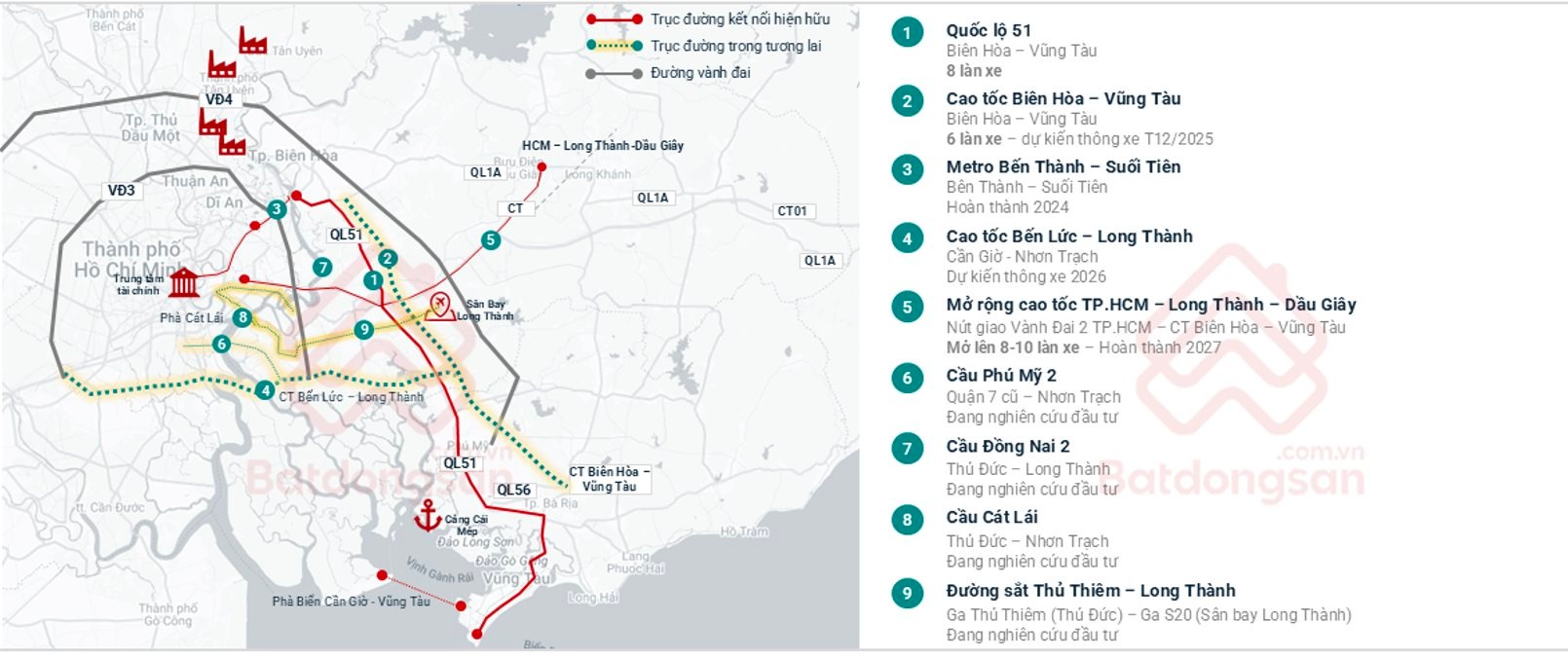 Đồng Nai có vị trí chiến lược trong bức tranh đô thị mở rộng và logistics cảng biển – sân bay phía Đông TP. HCM. Hàng loạt dự án hạ tầng trọng điểm đang dần thay đổi diện mạo khu Đông gồm: sân bay quốc tế Long Thành, cảng Cái Mép – Thị Vải, cao tốc Biên Hòa – Vũng Tàu, TP.HCM – Long Thành – Dầu Giây, cầu Cát Lái, cầu Phú Mỹ 2, cầu Đồng Nai 2, tuyến đường sắt Thủ Thiêm – Long Thành…