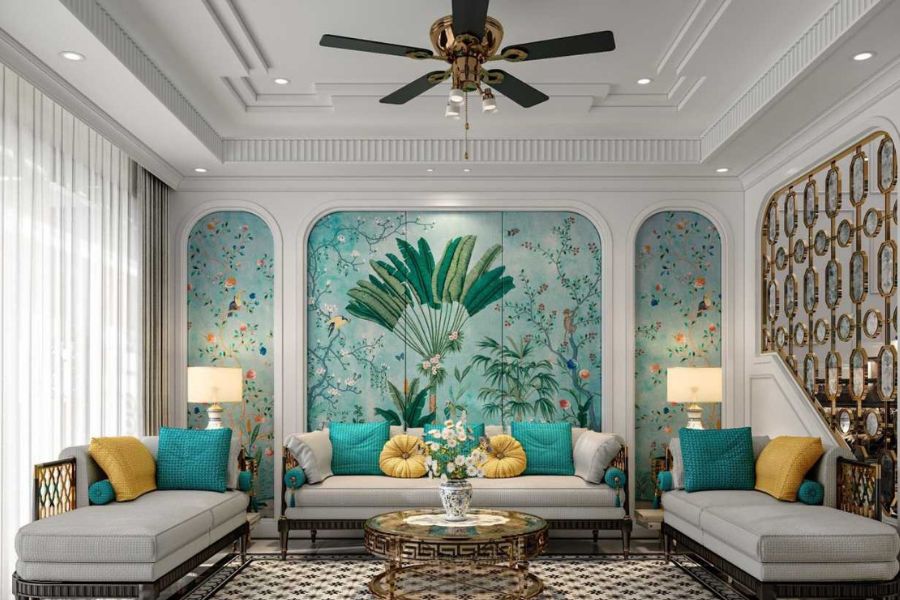 Trần nhà đẹp sẽ góp phần nổi bật những chi tiết khác trong căn phòng: Trường hợp thiết kế dựa trên phong cách riêng thì việc lựa chọn các gam màu phù hợp, tương ứng làm tăng thêm vẻ đẹp vốn có.