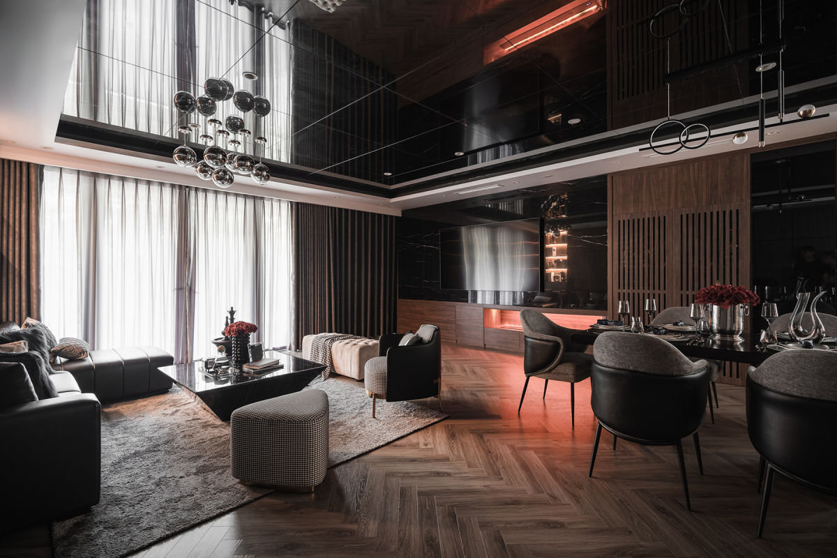 Hạ thấp trần nhà: Nếu trần nhà thiết kế quá cao, gia chủ hoàn toàn có thể hạ thấp bằng việc lựa chọn những tông màu tối.