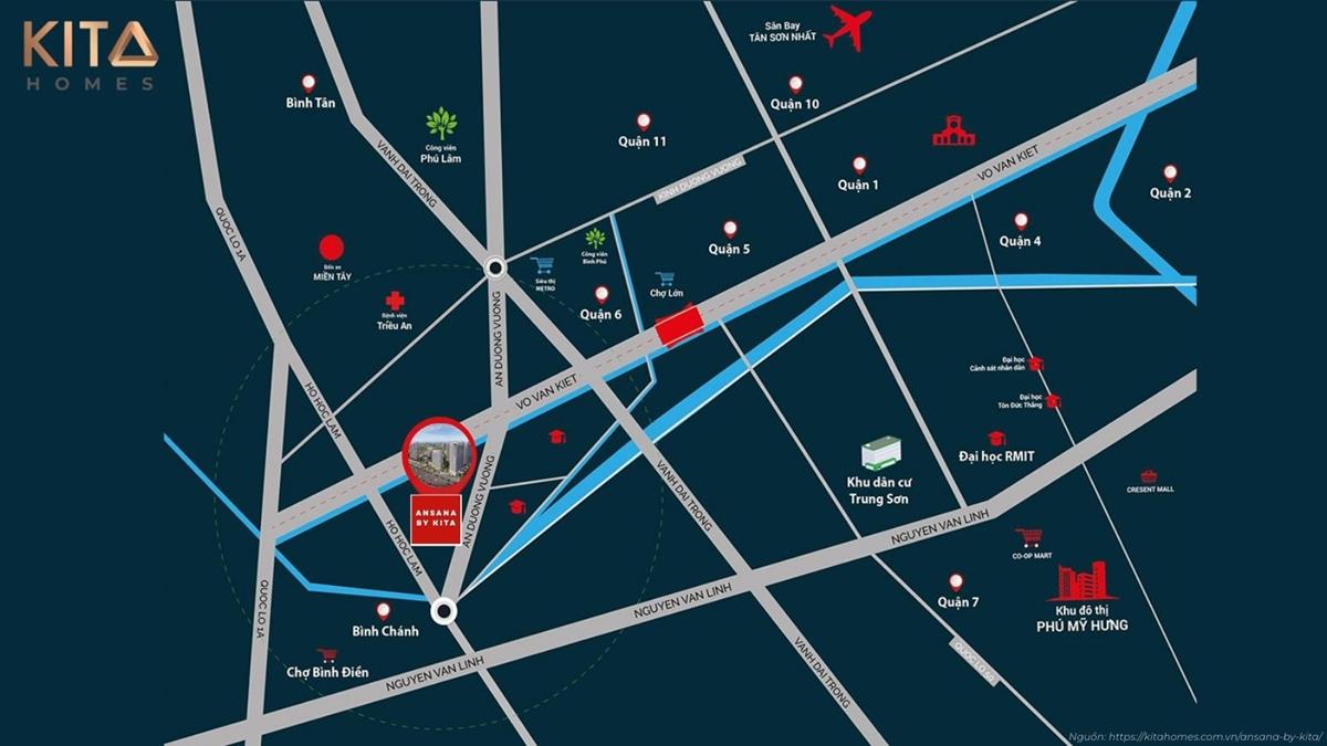 Ansana by Kita tọa lạc tại tuyến đường được đánh giá là mang tính chiến lược cao. Tuyến đường nối trực tiếp giữa đại lộ Võ Văn Kiệt với An Dương Vương là công trình trọng điểm tại khu vực cửa ngõ phía Tây thành phố Hồ Chí Minh.